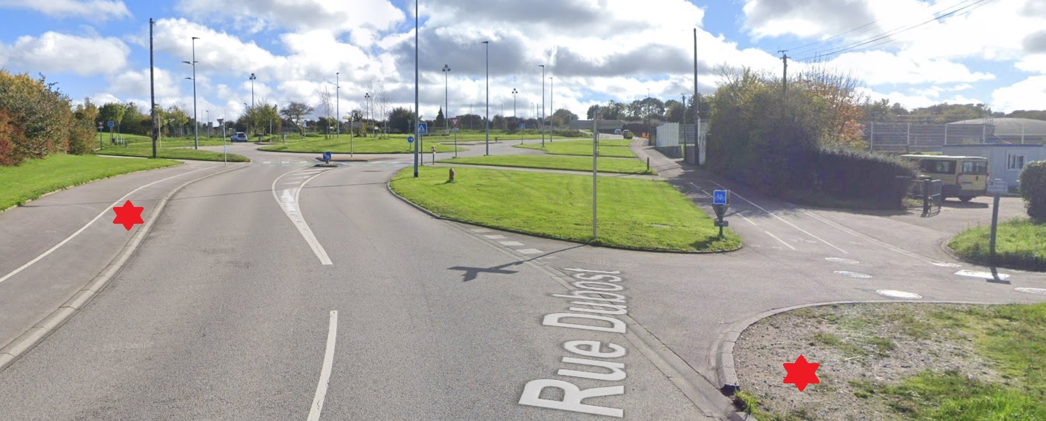 L’arrêt « FERMANVILLE La Pièce au Duc » sera reporté quelques centaines de mètres après è Juste après le panneau de fin de limitation à 70km/h, au niveau de la 2ème intersection sur la droite.